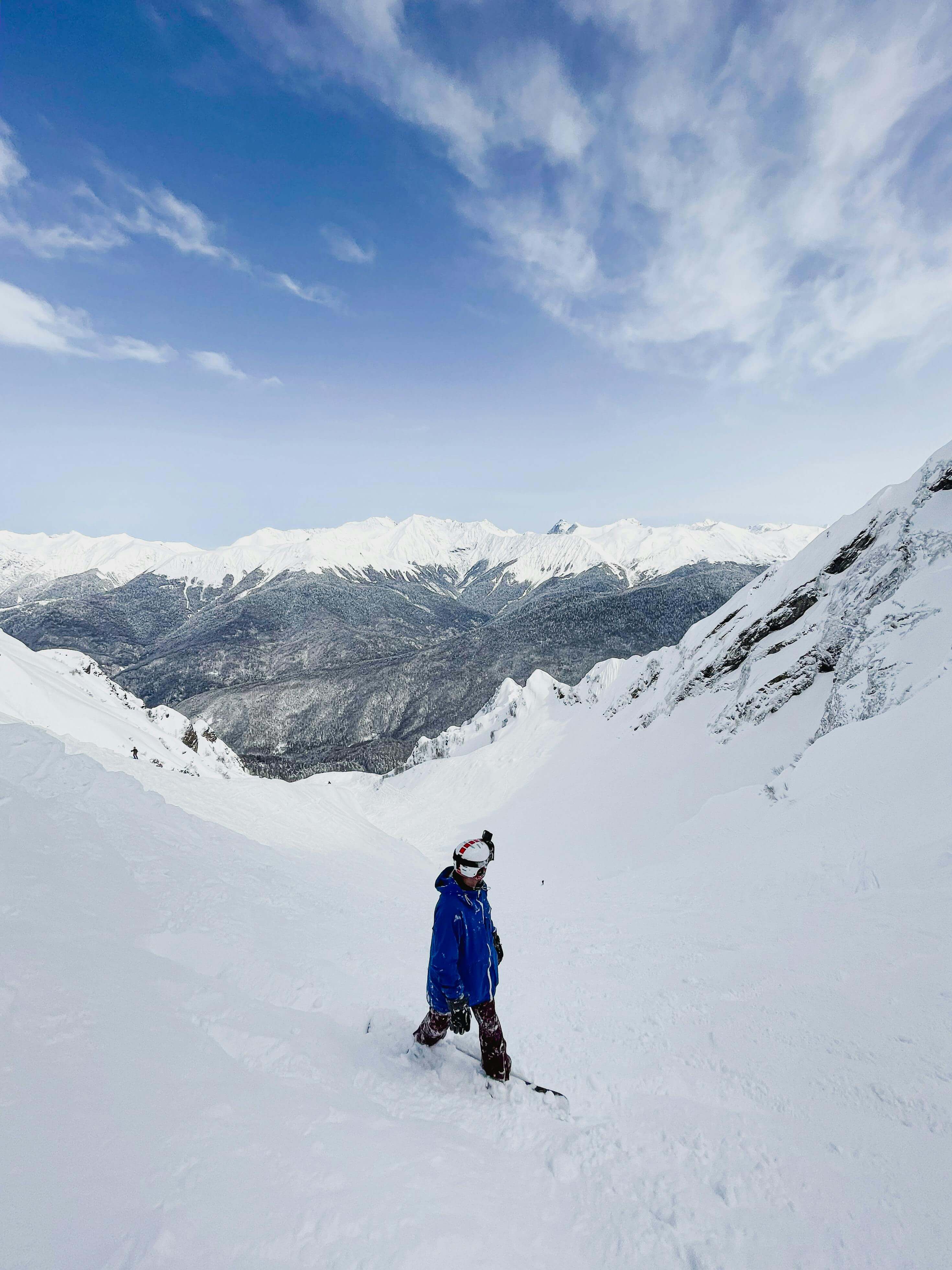 하얀 눈이 덮인 기암괴석과 절벽은 마치 산 전체가 거대한 조각상이 된 듯합니다.